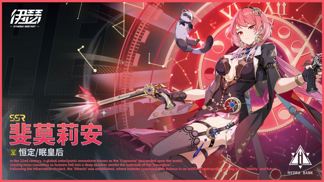 // 伊瑟ID:斐莫莉安 // 称号:眠皇后 // 所属势力:海德拉银行 ——「驱使我,可是要付出代价的哦,你准备好了吗?」 // 异格者技能:斐莫莉安是一位辅助型异格者,她能够通过【追债人】效果制造更多的自身行动机会,造成不俗伤害并击退敌方行动进度。 #伊瑟
