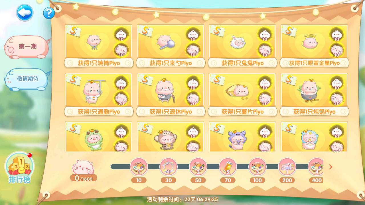 谁能拒绝香香软软、粉红可爱的联动萌鱼呢?聪明的馆长都开始拿小本本记下萌鱼的收集路线和活动玩法啦! Piyo野营记第一期系列鱼分为四条基础收集路线:转椅Piyo、来勺Piyo、兔兔Piyo、眼冒金星Piyo 由它们变异的萌鱼将会到达活动集市中!获得方式:蜜旅手册、野筵之约、商店 01 转椅Piyo系列鱼收集路线 转椅Piyo可变异出S级通勤Piyo、退休Piyo、发薪Piyo、搬砖Piyo,它们的鱼