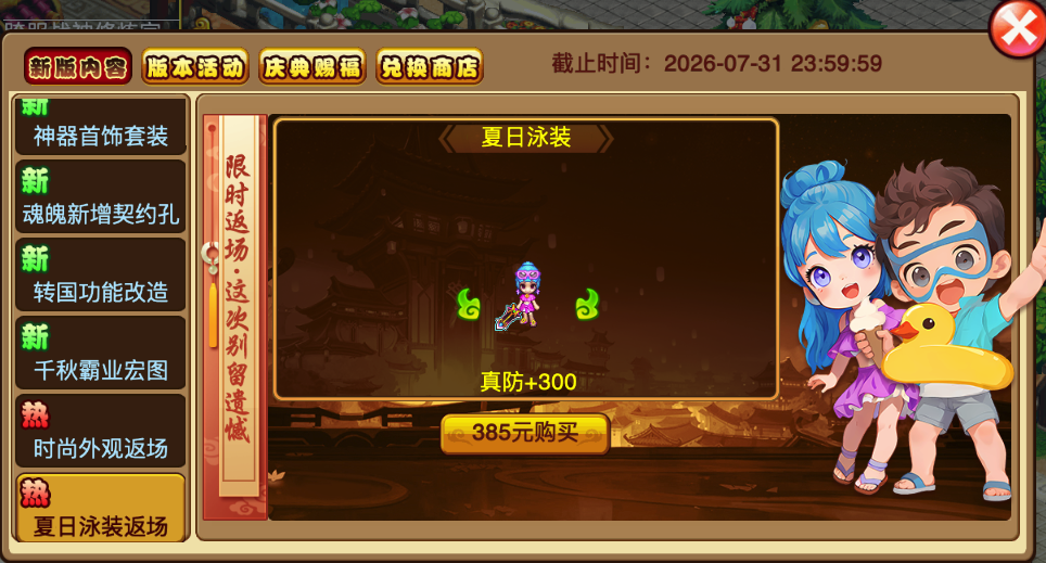 全新回归目标活动、超级现金补贴、珍稀祥龙坐骑、专属充值返利等多重豪礼相送! 即刻回归,重掌帅印,领取专属豪礼,重温战斗的激情与快乐! 回归条件:活跃活动或回归活动结束后,账号离线时间超过180天 回归全新福利一览 1. 回归目标全面升级 全面助力回归的将军快速上手新版本活动和新功能,还有诚意满满的福利送上! 每个任务奖励仅限领取1次! 2. 连续30天好礼不断 每日登录送跑环特权7天体验卡、回归