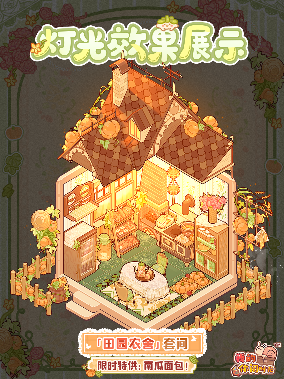「来份南瓜面包怎么样?新鲜出炉的哟~」 1月17日,限时套间「田园农舍」返场!一起沉浸式体验烘焙的乐趣吧~ ⭐️活动时间⭐️ 1月17日10:00-1月30日23:59 ⭐️限时套间「田园农舍」即将返场 活动期间,小蜗可以在「设计空间」-「田园农舍」获取相关家具及摆件;本次限时设计空间不会保留首开时的设计次数,已领取的奖励(丰收南瓜头像框、南瓜木桶邮箱、田园碎花壁纸、田园圆环花砖、硕果木栅栏、飘香