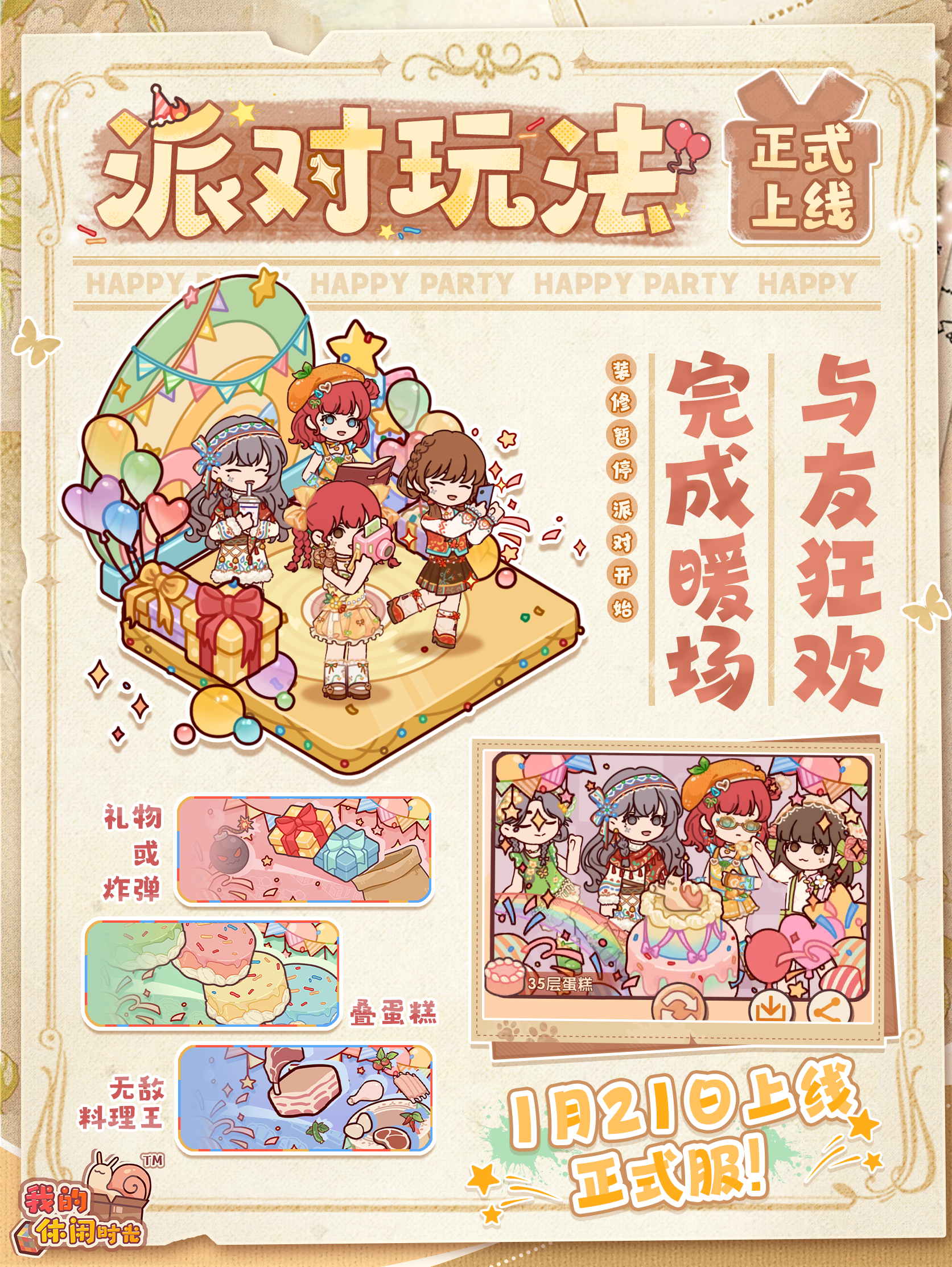 房子暖好了,下一步就是开派对啦! 在小屋摆上丰盛美味的餐点,换上最近新买的衣服 最后,再邀请几位好朋友一起狂欢吧~ 🎉全新玩法「派对」将于1月21日停服维护结束后上线正式服!当角色等级≥40级时即可前往猫头鹰号举办派对,小蜗们可以在派对期间聊天、放烟花、玩游戏和开启派对气球。另外,通过光子服的提前测试居居还收集到了部分游玩反馈,并在本次上线正式服时对玩法进行了优化与调整,现在就来一起看看吧~ 👉更