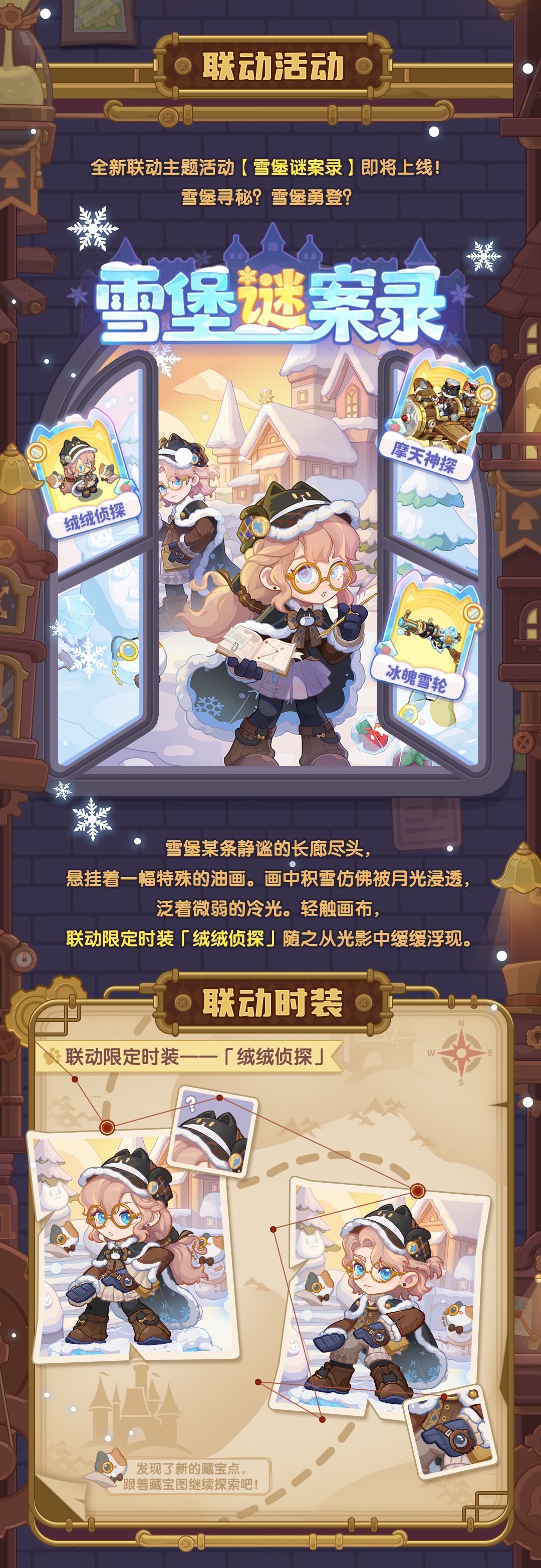 由上影元授权,保卫向日葵x黑猫警长 联动大升级~,一行人被传送至城堡,追查案件时却意外发现了城堡隐藏的终极秘密:一笔失落的宝藏!