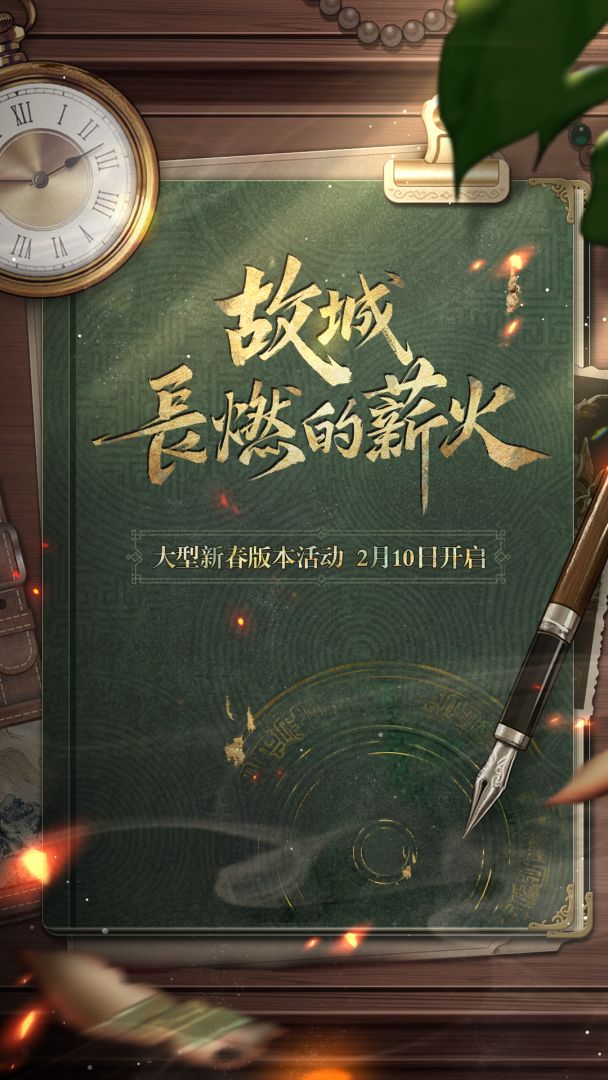 大型新春活动「故城长燃的薪火」即将开启, 全新活动开启,惊喜福利相伴。 乱世暗潮涌动,携手破局寻踪。 ✨2月10日更新后,大型新春活动「故城长燃的薪火」正式上线 ※活动日期以具体版本更新公告时间为准