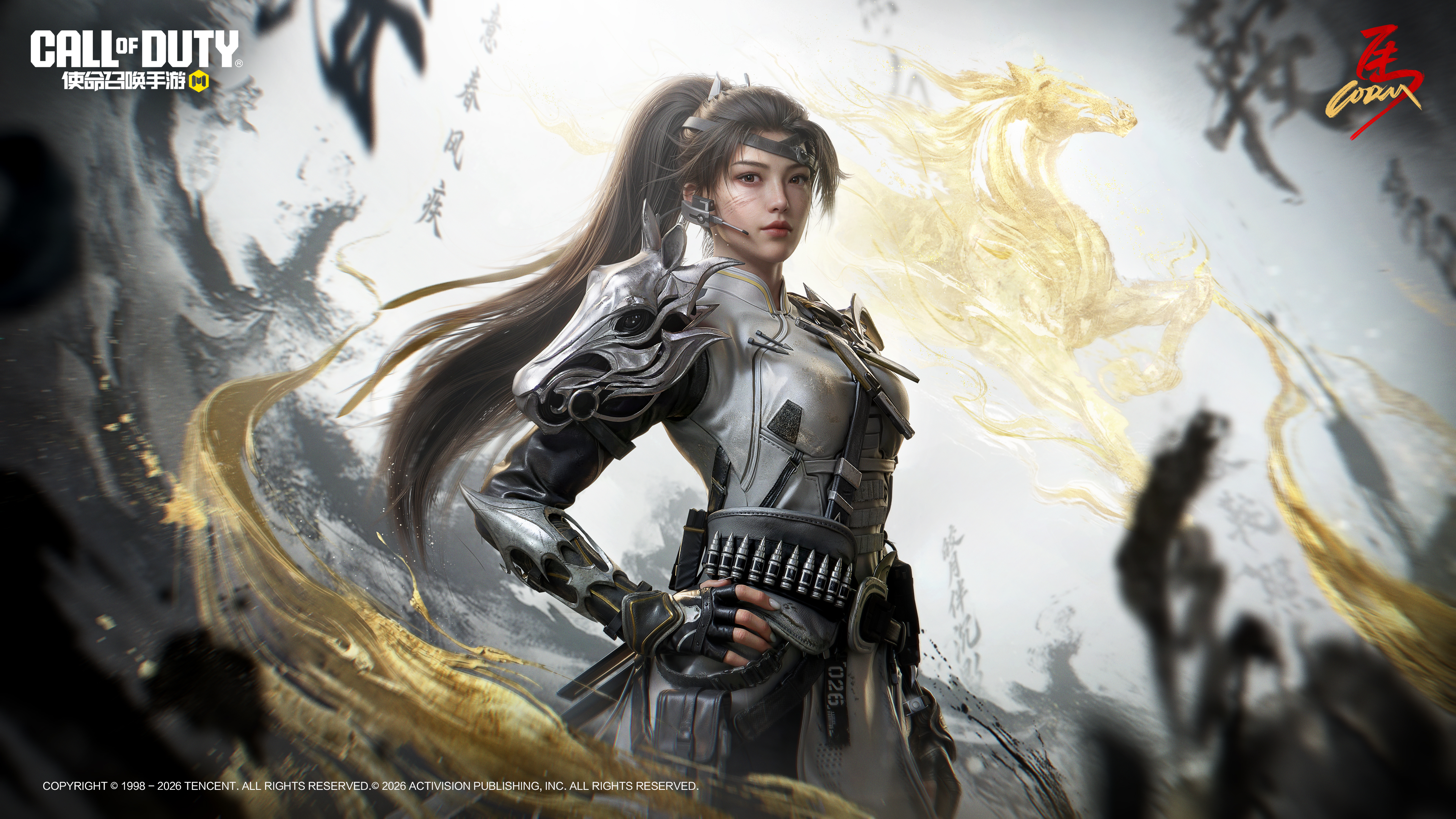 银甲映辉,岁序更新 追风伴影,水墨书写骏马之形 史诗级角色沉影-西风骁骑 化身皎月般的侠女 将于农历春节版本来到战士们身边~ 大家都从昨天的背影图中猜到她的身份了吗? 奖励猜中的战士被沉影小姐姐的马尾辫扫一次