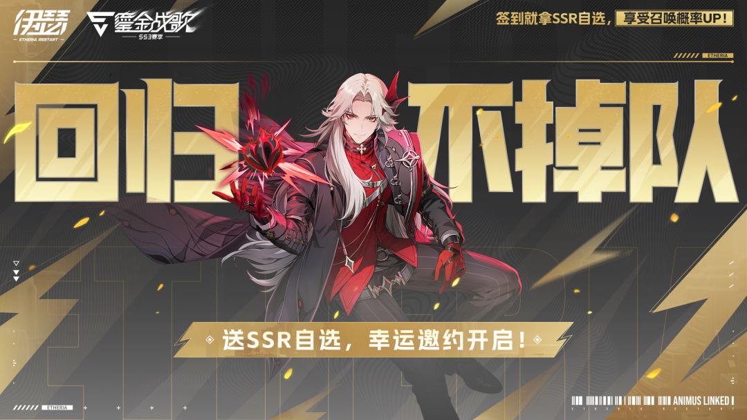 🎉欢迎回来!曾经的朋友! 新的赛季即将开启,回归奖励也迎来全面升级! 在2月5日SS3鎏金战歌新赛季开启后(注意新赛季开启后~)所有回归任务都将获得奖励的全面提升,以及新增全新回归专属功能。 ◇离线储存!最多一次性拿回60天错过的奖励。 ◇回归不掉队!回归后签到就送SSR自选,并且开启幸运邀约活动。 ◇3000点稳定值双倍掉落!回归专属双倍掉落【重逢的祝福】加成的稳定值上限提升,从原来的1000稳