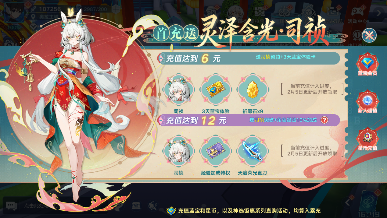 司桢首充获得