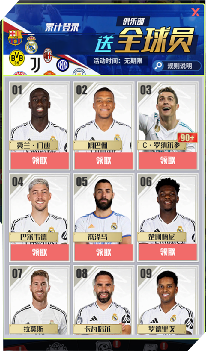 登录即送本队全球员