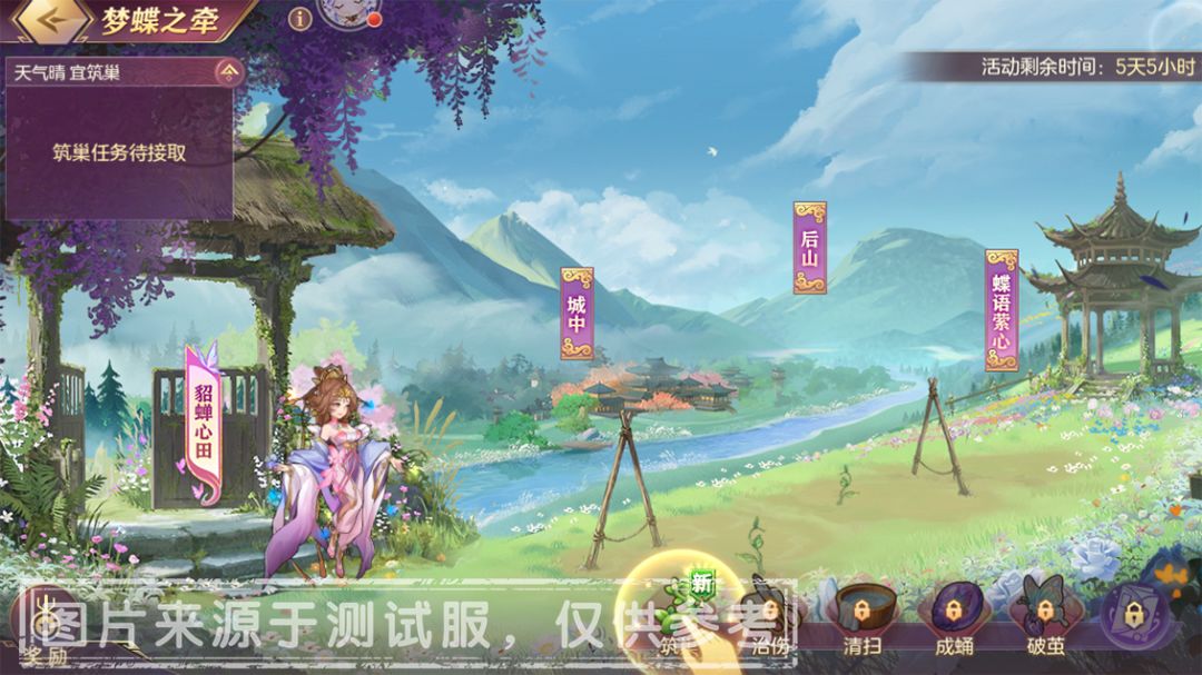 亲爱的小将军们: 一点春心托彩蝶,千山暮雪为君越!盎然春深,风至蝶苑,小将军将在此初春舒朗之际与貂蝉养育蝴蝶,解锁奇遇缔结专属情缘~2026年白情活动“梦蝶之牵”即将登场! 活动期间,小将军们可通过活动获取大量元宝、「善灵灵魄或神将碎片任选」、「头像框·流光织锦」等丰厚奖励!一起来看看活动详情吧~ ■ 活动详情 ■ 活动时间: 2026年3月14日 05:00~2026年3月25日 04:59 活