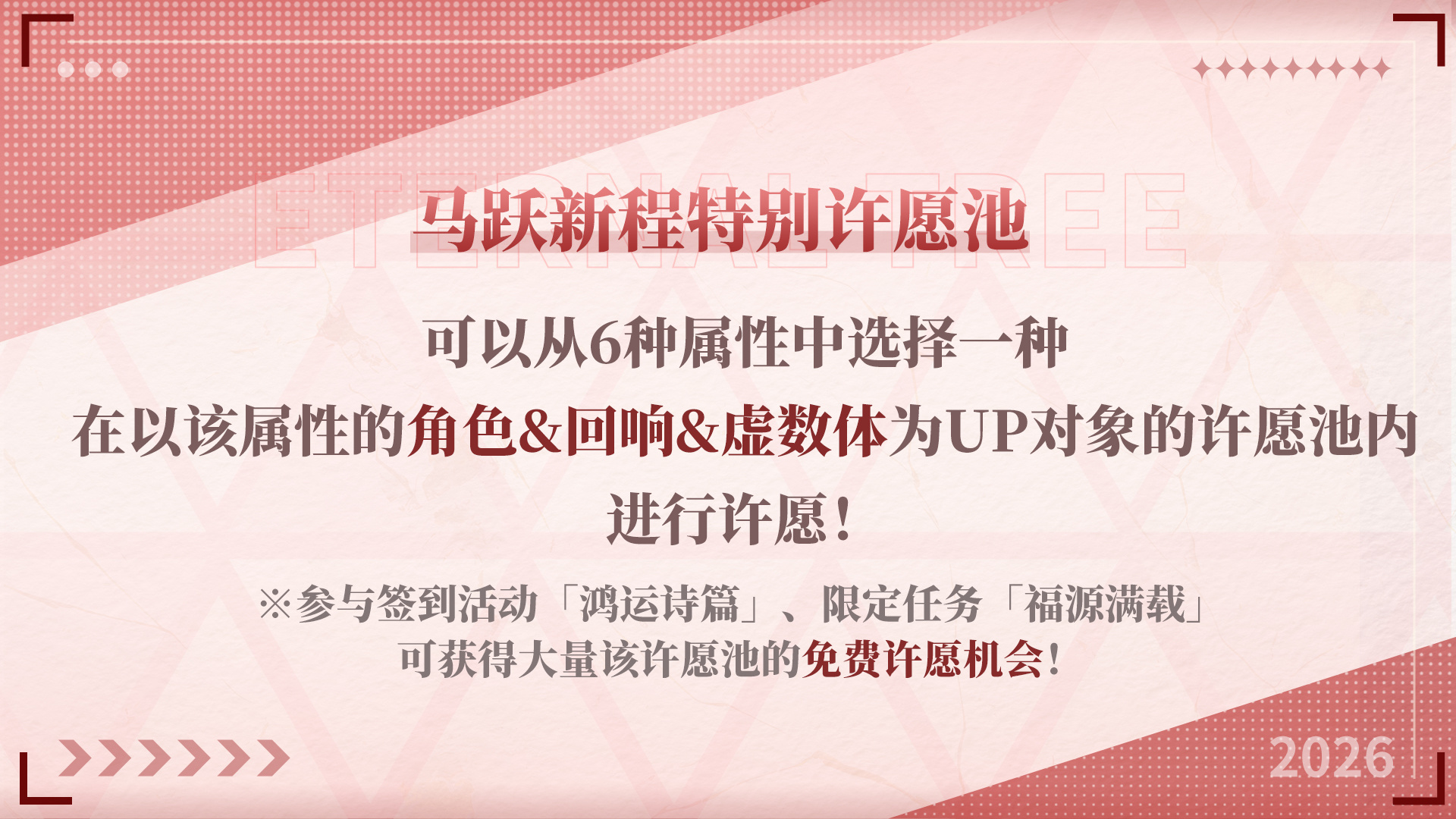 红月节版本预热开启!特别活动「聚福迎运」全服领红包,签到活动&限定任务领取大量免费许愿机会!