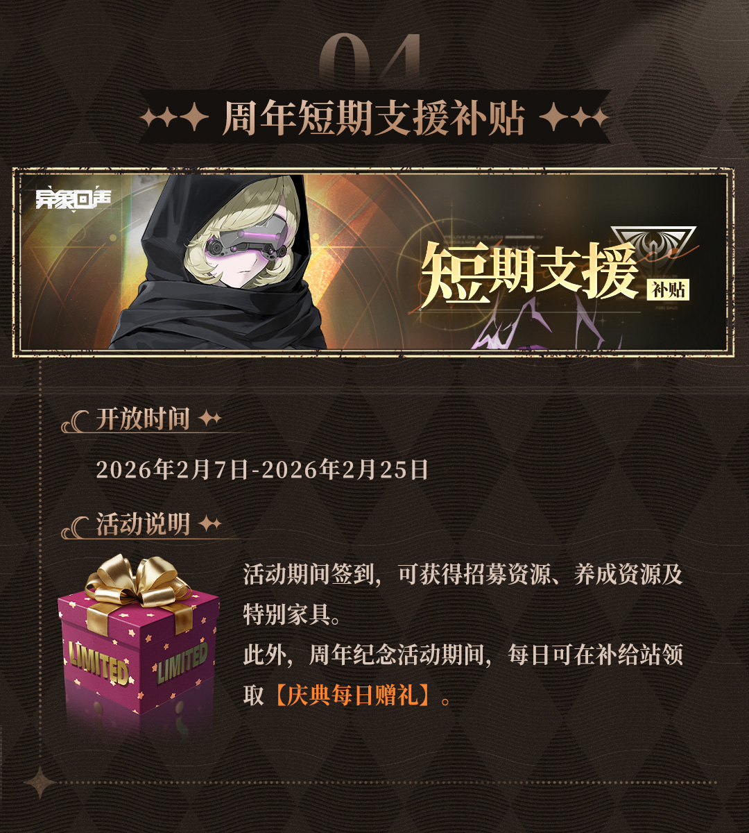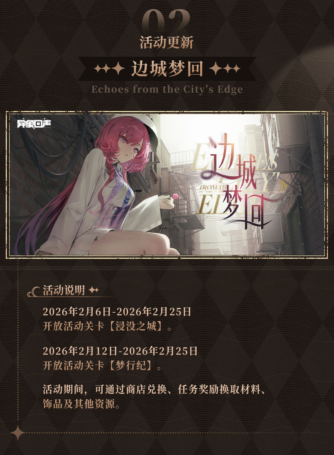 以下是《异象回声》关于2月6日「边城梦回」版本的更新说明,包括短期回馈调整、活动细则说明等,请科长们及时查阅! ▶▶ 官方社群 异象回声官方交流2群:824529070 异象回声官方交流3群:818275762 ▉▍游戏下载 移动端下载 桌面互通版可前往《异象回声》官网下载,点击【桌面互通版】: #异象回声 #发现好游戏 #战棋 #边城梦回