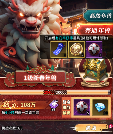 年兽掉落奖励提升