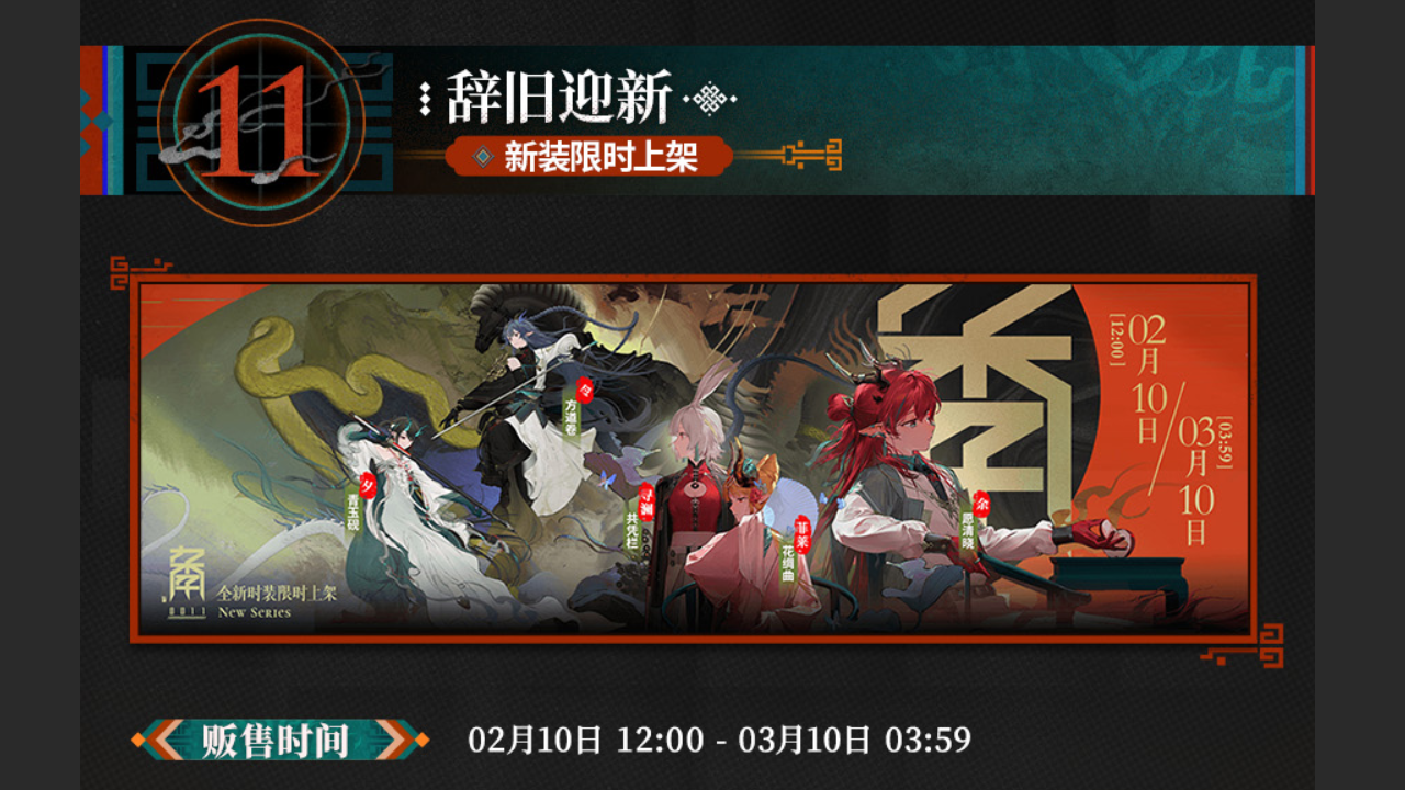 2月10日 SideStory「辞岁行」限时开启!更多活动内容及福利详情敬请关注官方公告。