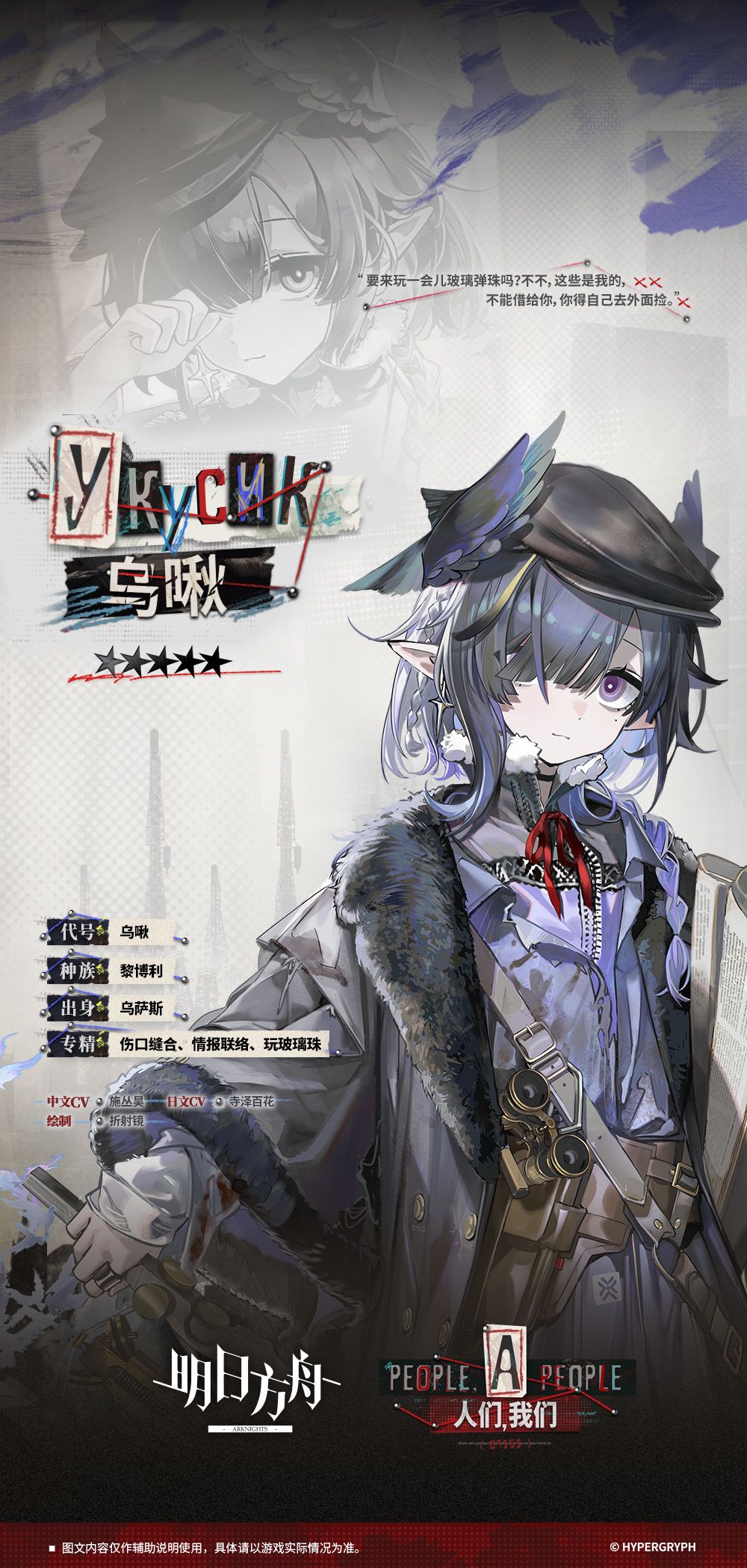 【新增干员】 //乌啾 “你就是索尼娅老大的老大?叫我乌啾就行。索尼娅说你很厉害,不过你看着不像是能打过她的样子。行吧,别担心,真打起来我会帮你的——你笑什么?” ____________ 三天,十封投诉信。 乌啾不能再担任前台接待工作了,圣骏堡办事处的干员们已经达成共识。 唯一的反对者是乌啾本人,她表示自己其实很擅长这份工作,只是恰巧碰到了些脾气不好的顾客。 “可是你惹怒了那位来谈订单的药物供应