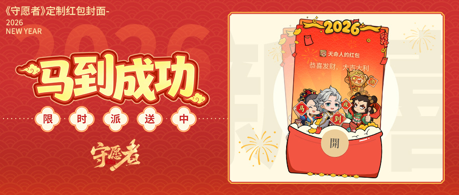 亲爱的天命人大大~新年好!没想到小猪猪发放的红包封面2天就领完啦!着实让小猪猪没料到,于是赶紧申请加量一波~还没领到的天命人快快领取吧!(可能是最后一弹咯[表情_可爱][表情_可爱] 《守愿者》 新春限定红包封面,现已在正式上线啦!快动动手指领走这份限定心意,把来自三界的祝福与好运,送给你身边最重要的人吧~ 新的一年,《守愿者》祝愿所有天命人福气满满,愿力高涨,欧气常伴! 活动时间:即日起-2月2