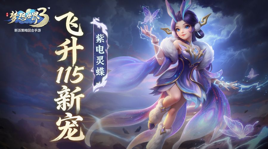 《梦想世界3》手游春季新内容“雷鸣惊蛰”将于3月5日正式上线,同名大服3月6日火热开启,飞升新宠、全新单法宠「紫电灵蝶」降临!除此之外,还有全新宠物装备,云顶天宫新赛季,新外观装扮,新挑战和各种丰富精彩的福利活动蓄势待发!欢迎各位少侠前往梦想大陆体验新内容~ 本次为少侠带来的是:新宠物「紫电灵蝶」的详细前瞻! 她擅长高速单体法术攻击 拥有目前全宠物最高的法力、速度资质 专属技能可造成多段单体法术伤