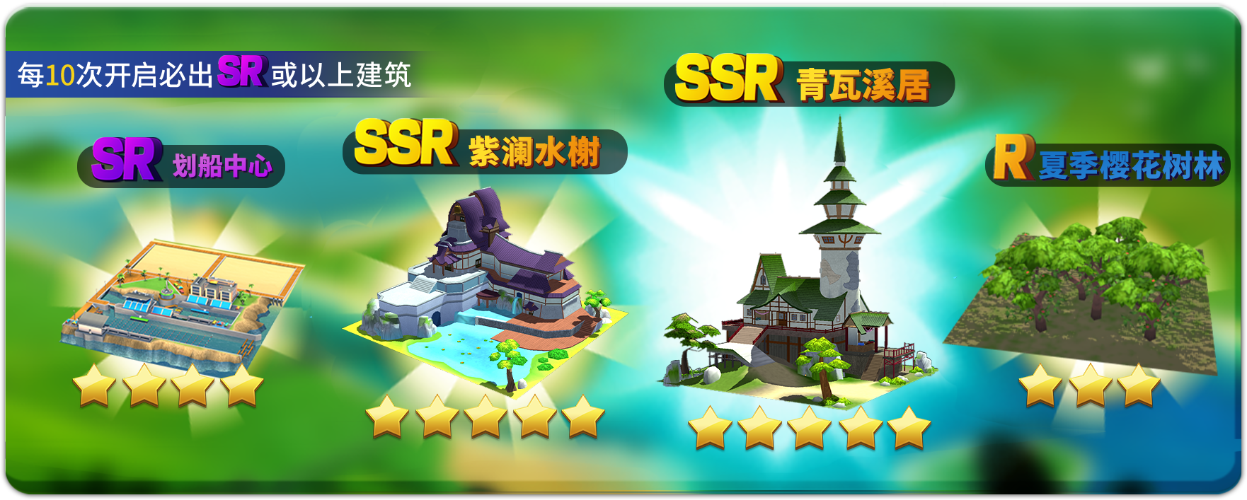 完成迷你城建,收获惊喜更有建筑大奖青瓷轩等你拿;全国风赛季骏马迎春开启;锦华塔加入限时豪华套餐礼包;建筑盲盒金龙御殿、擎天玄塔限时开放抽取。