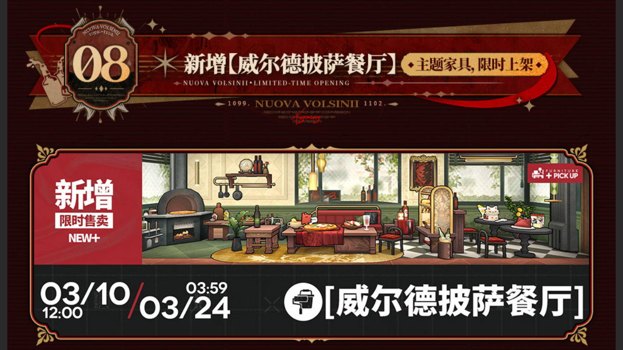 新增【威尔德披萨餐厅】主题家具