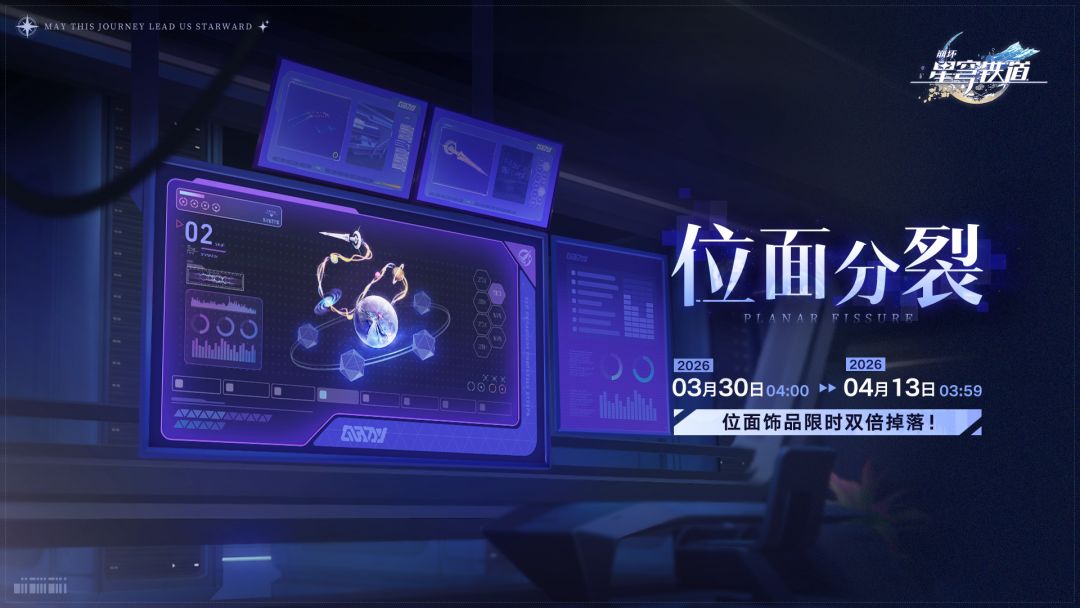 亲爱的开拓者: 本期「位面分裂」活动时间为 2026/03/30 04:00 - 2026/04/13 03:59。 活动期间将获得一定的双倍奖励次数,在「模拟宇宙」中获取沉浸奖励或进行「饰品提取」时,可获得双倍奖励。