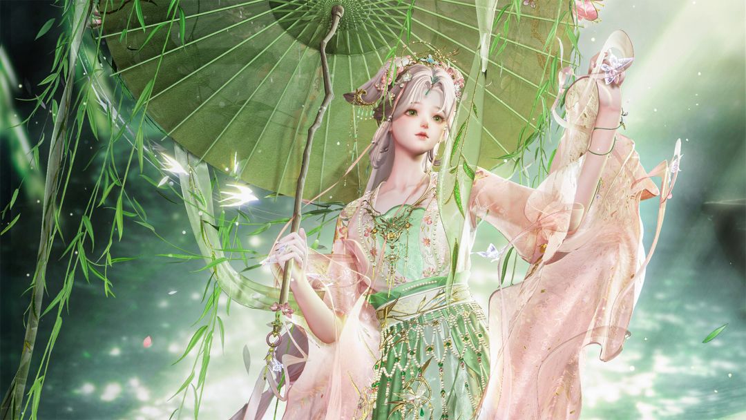 #以闪亮之名三周年共赴新程# 全新三周年版本·宙瞳之则 3月17日-4月6日限时登陆! ❗️形态创新手持❗️打破纸伞刚性结构,伞骨幻化为垂坠柳枝,伞面由嫩绿柳叶编织而成! ❗️国风撞色连衣裙❗️层叠裙摆如流动春水,桃红柳绿撞色搭配立体蝴蝶点缀! ❗️古典发型❗️致敬垂云髻造型,点缀桃花与金饰,重现古典仕女图中的温婉气韵! ❗️专属柳叶飘落特效❗️手持与连衣裙在行止间皆能感知春分节气的律动!手持纸伞