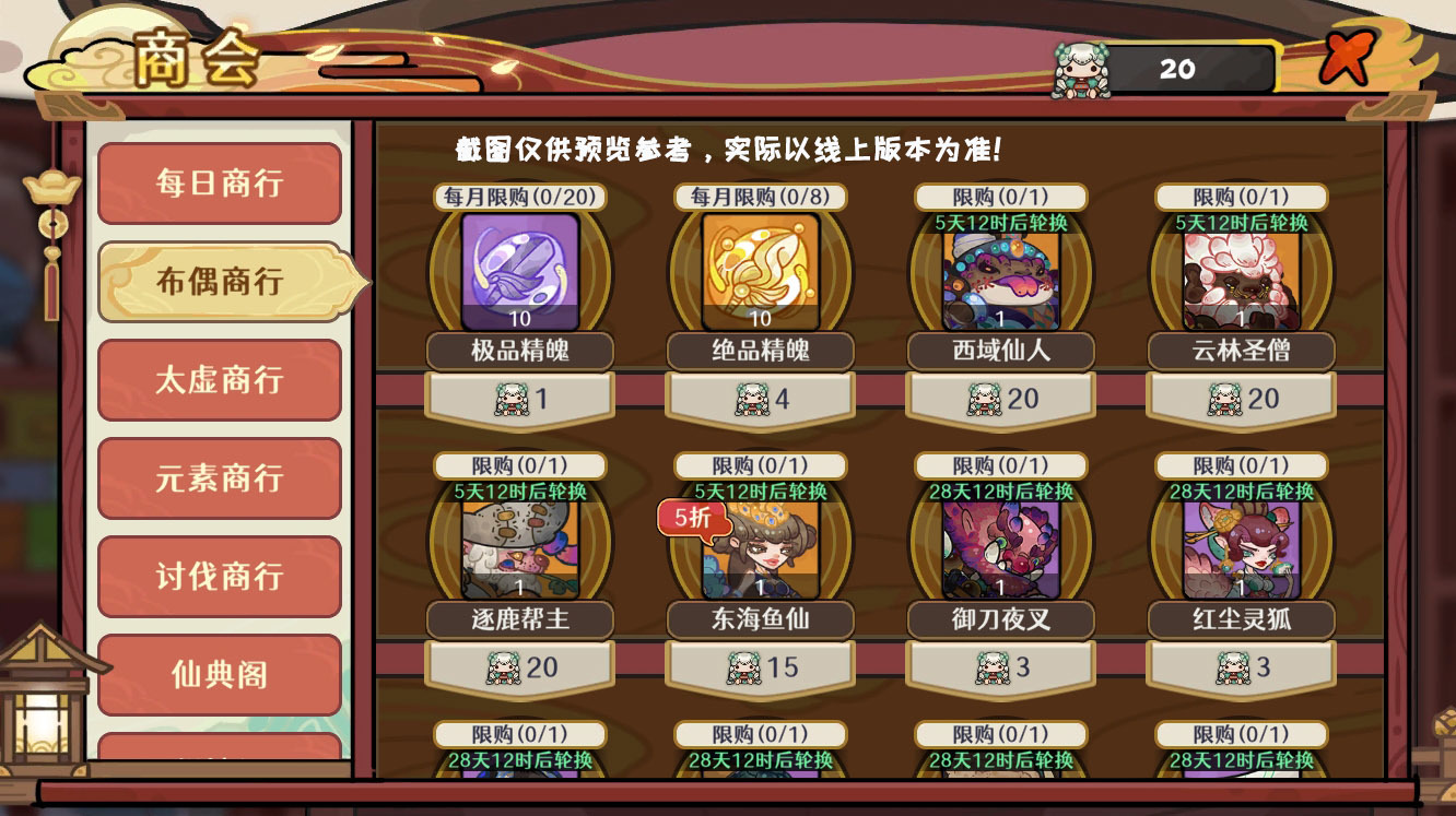 限时武侠布偶商店上新