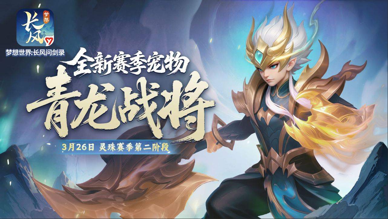 《梦想世界:长风问剑录》灵珠赛季第二阶段将于3月26日上线!春季大服【龙游四海】3月27日开启,新服流程全面优化,入驻即领开服好礼! 全新仙兽绛珠降临,结契共生,护佑战场;双赛季宠来袭,灵蝶破茧,龙战于野。还有全新宠物觉醒系统和丰富赛季活动等你体验! 本篇内容,为大家带来全新赛季宠物“青龙战将”的前瞻讯息,一起来看看吧! (内容为前瞻爆料,请以游戏内实际效果为准) 一、基本介绍 金甲凝光耀锋芒,龙