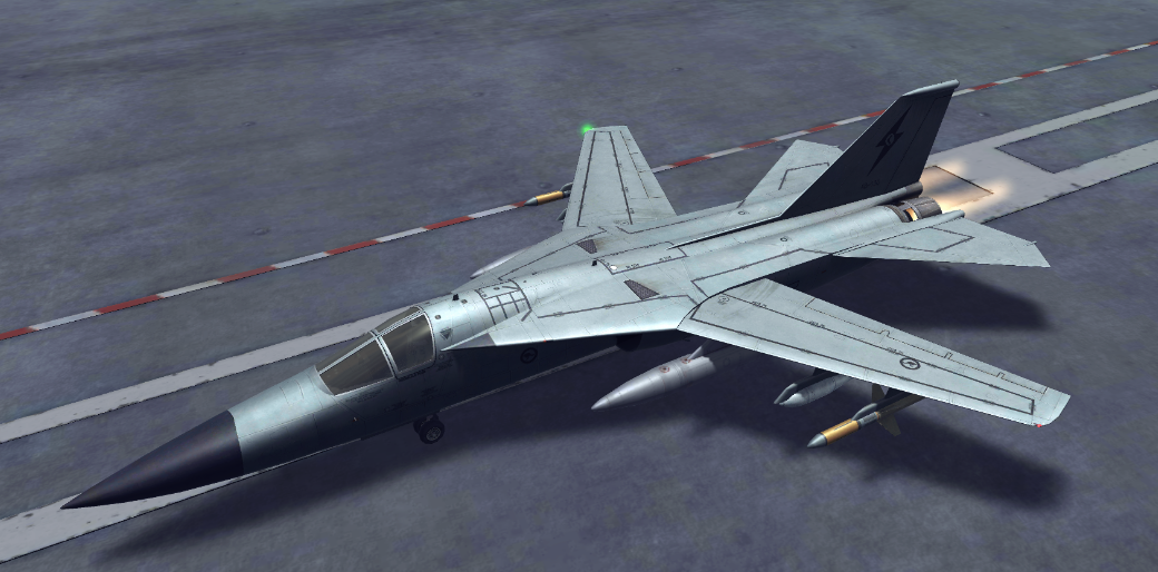 一、新飞机 B级 防御机 【F-111 土豚】 F-111 “土豚” 是美国通用动力公司于 1960 年代研发的全球首款实用型可变后掠翼战斗轰炸机,也是冷战时期远程低空突防战术打击的标志性装备。作为 TFX 项目的核心产物,它率先实现可变后掠翼技术量产化,机翼后掠角可在 16°(低速起降)至 72.5°(超音速冲刺)间无级调节,完美兼顾短距起降与高空高速突防能力,开创了多速度域作战的先河。 F-