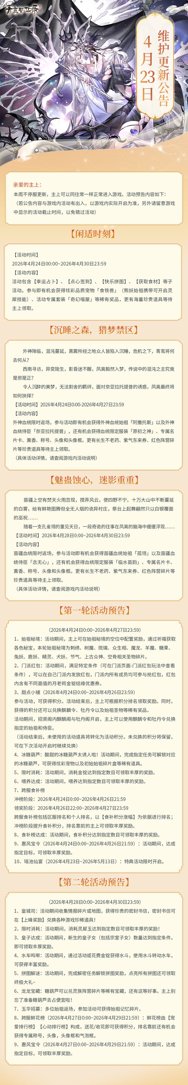 4月23日更新公告丨外神、苗疆血统返场