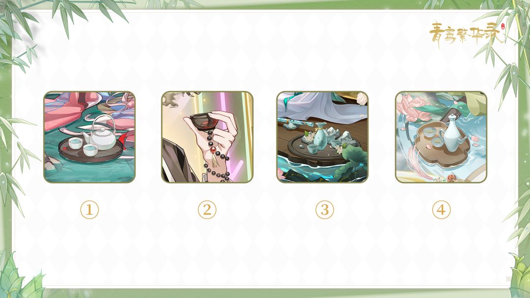 未知东郭清明酒,何似西窗谷雨茶。 谷雨就要到啦,来都来了喝点茶再走吧! 不过不是在这里喝,走走走我们去讨点茶喝~ 主上看出来这都是谁家的茶了吗?(去谁家好呢……) ▮活动时间 即日起——2026年4月20日14:00 ▮参与方式 回复4个切片分别对应的血统或角色,注明你的游戏ID,即可参与本次活动 ▮活动奖励 青鸾互动礼包*50(内含:绑金*388,紫气东来券*1,灵犀玉*5,养育积分*20)