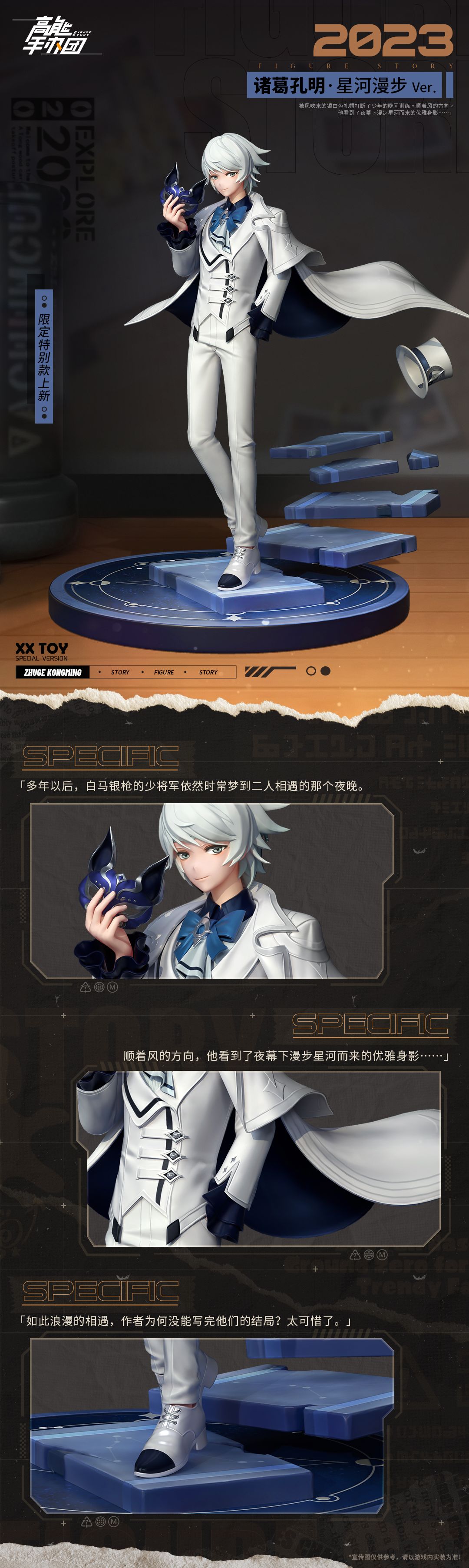 《高能手办团》限定特别款“诸葛孔明·星河漫步Ver. ”已经涂装完成,快来跟柴狐一起欣赏下限定特别款的细节吧~ 收藏家们get到这份极致优雅了么?“诸葛孔明·星河漫步Ver. ” 将于4月21日开启的《时光电影社》春日招新活动中正式登场,使用若干特殊道具「蛙蛙纽扣」即可兑换,喜欢的玩家一定要多多关注哦~ 【今日礼包码:帅就一个字】
