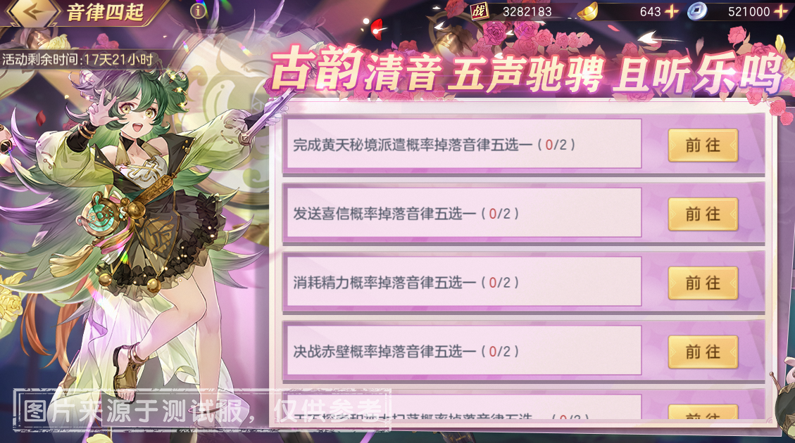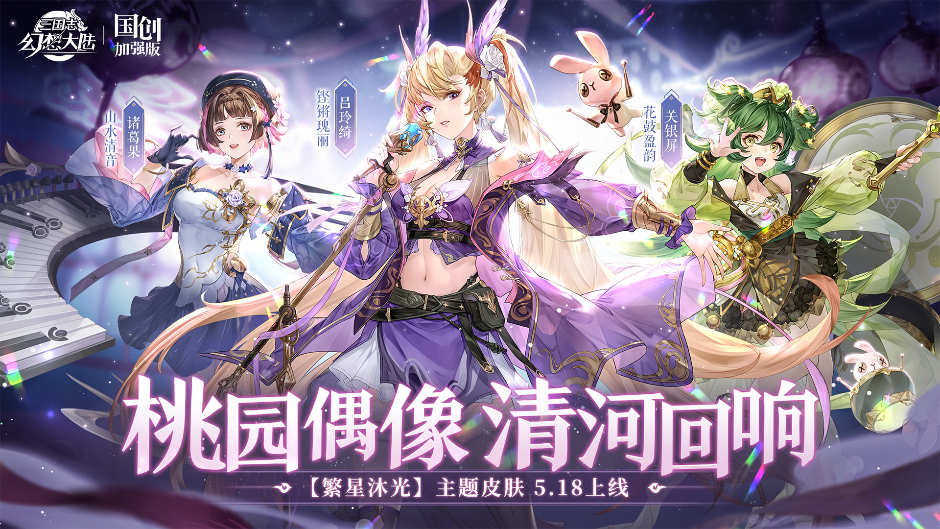 亲爱的小将军: 星光熠熠,踏乐而行!时隔多日,繁星少女团再次光临清河郡,化身舞台歌手,为小将军带来精彩演出!重磅福利活动“繁星沐光行”携限时演出活动“聆音呓语”来临! 在繁星沐光行活动中,小将军完成各项任务,可累计获得元宝奖励和繁星点,累计繁星点达到指定数量可获得上万元宝、关银屏史诗级皮肤·花鼓盈韵、诸葛果史诗级皮肤·山水清音等丰厚奖励!在获得奖励的同时,原价98元的吕玲绮史诗级皮肤·铿锵瑰丽也将