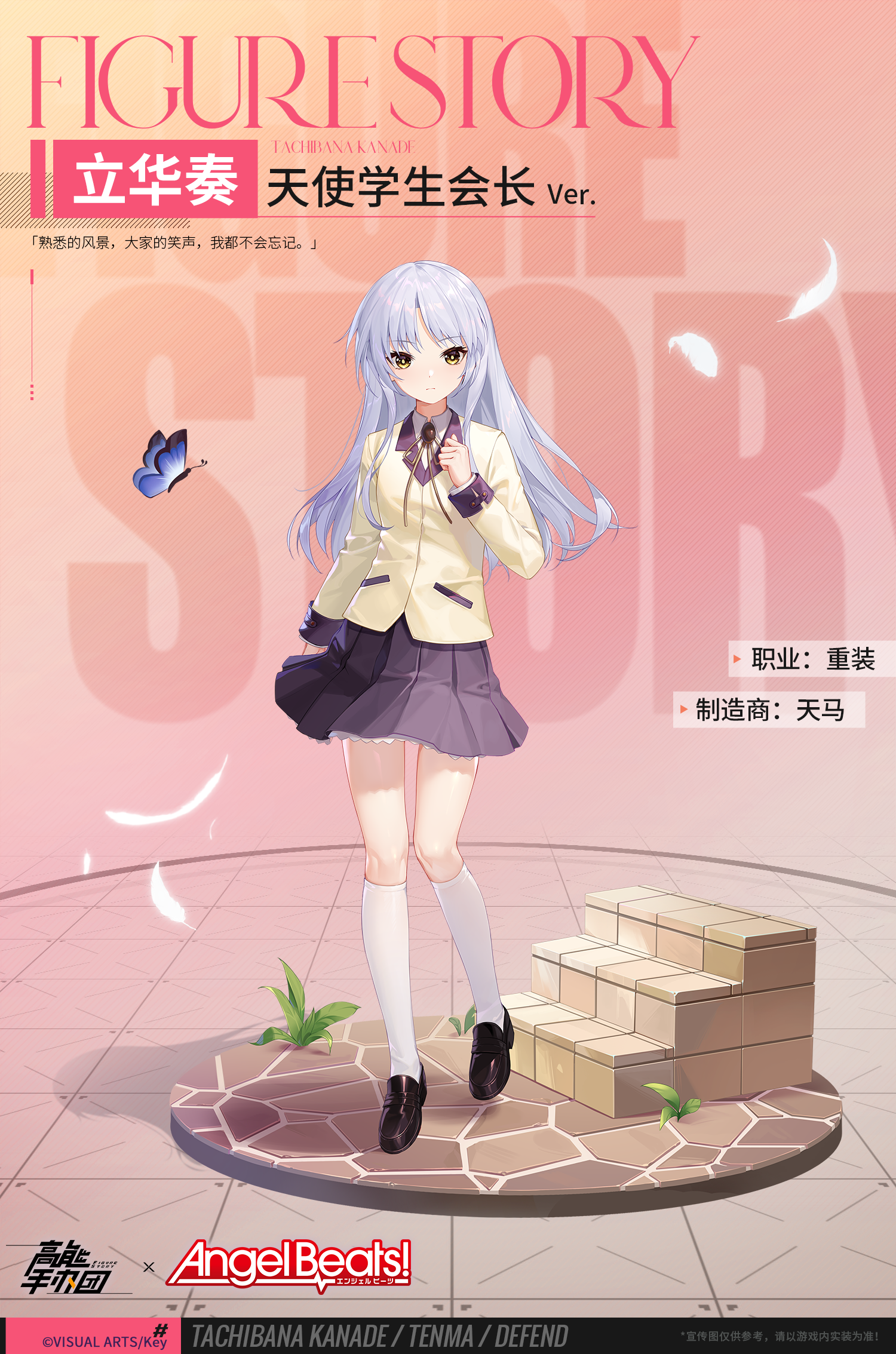 《Angel Beats!》是知名恋爱冒险游戏,游戏讲述了死后世界中少年少女们建立“死后世界战线”共同作战,挑战命运及强大神使——“天使”的过程中所发生的故事。本次联动中,两位来自《Angel Beats!》的人气角色将在《高能手办团