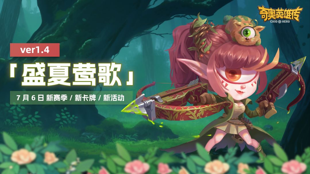 感谢大家对奇奥的关注与支持。 SS骇浪赛季接近尾声,全新的S4盛夏赛季即将来临! 一起来看看新赛季有哪些新卡吧: *以下所有内容和卡牌仅作为前瞻展示,最终效果和数值请以正式上线的1.4版本为准 弥恩辉下万物生 沐光颂歌林中巡 ◆新英雄 『遐歌』 ◇目族 ◇15血量 ◇天赋 『矢无独射』:对敌方造成伤害时展示1张单位牌,若展示牌等级≤伤害则对敌方造成2伤害(回合型) ◆新专属秘技 ·遐歌 ◇『阿