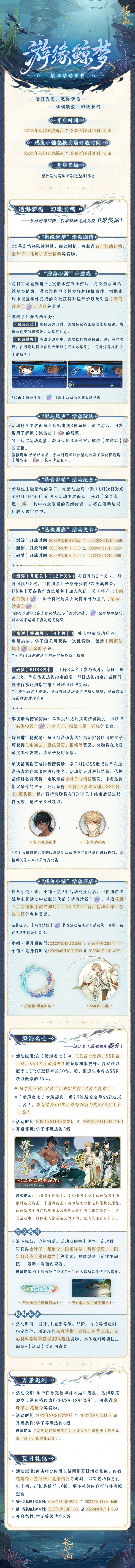 晴日为岛,逝海梦循。蟠螭跃浪,幻歌长鸣。 8月3日更新后「游缘鲸梦」全新主题活动正式开启。鲸鸣海风,鱼群鸥鸟,潮声与谁拥有着同样的心跳…… 为各位学子奉上「游缘鲸梦」期间活动总览! ▌“游缘鲸梦”活动剧情 22幕剧情将陆续解锁,阅读剧情即可获得奖励。 ▌“潜海心游”小游戏 每日可与夏泰进行1次潜水憋气小游戏,潜水过程中会触发各种随机事件。根据本局中交互事件完成的次数获得对应评价以及奖励。 ▌“鲲岛
