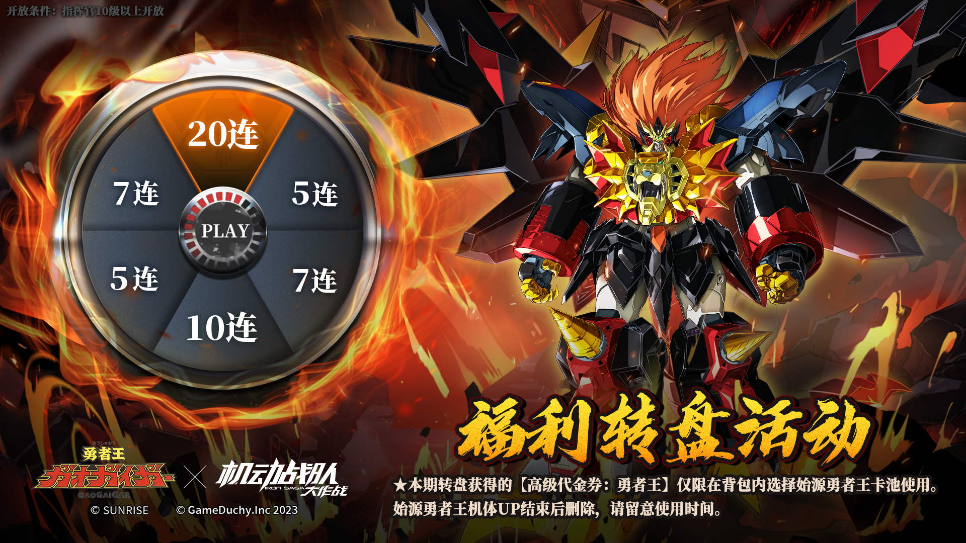 【更新公告】10月31日—《勇者王GaoGaiGar》联动开启,转盘活动同步抵达!