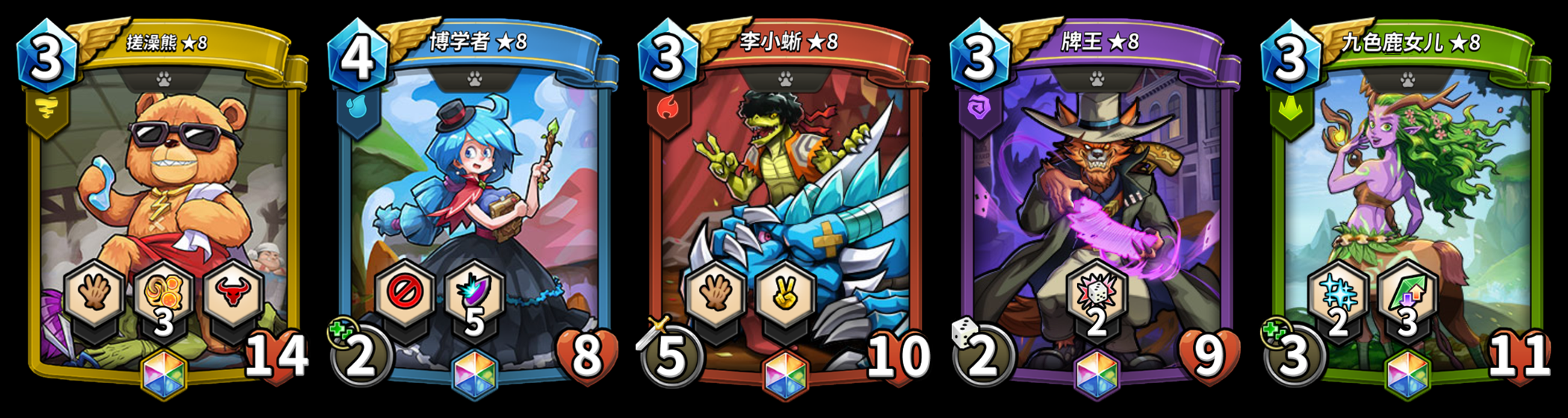 全新精英卡「乐园打手 熊奇」、「白虎战士」以及「闪耀的偏光三八面体」。