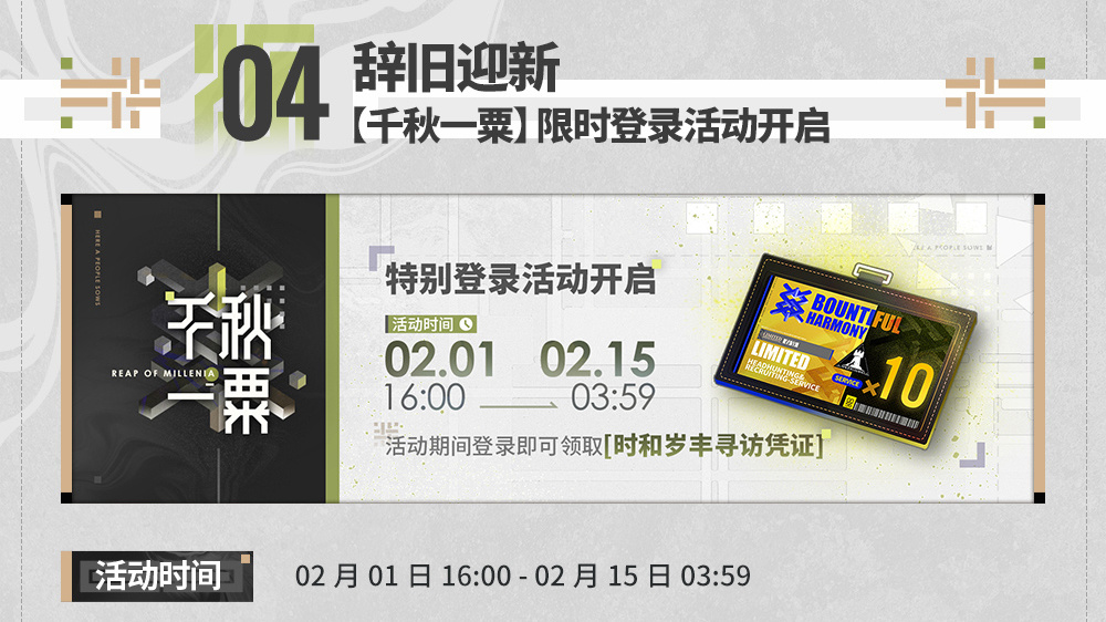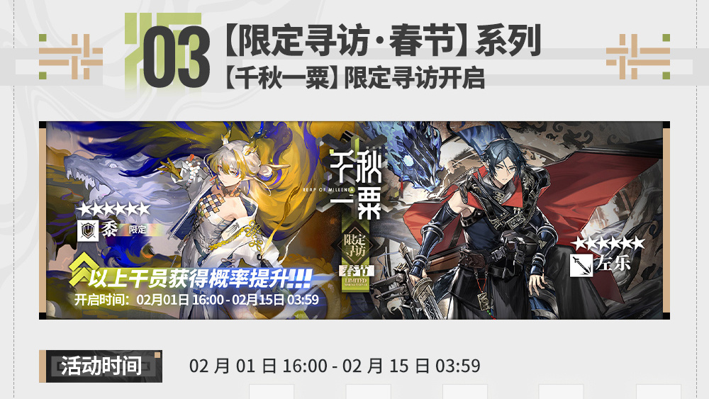 2月10日 SideStory「辞岁行」限时开启!更多活动内容及福利详情敬请关注官方公告。