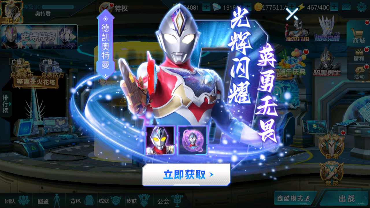 八周年庆典开启,满星传说登录即领;全新神话品质赛迦奥特曼登场;组队副本上线,喊上你的伙伴一起摸金分红;变身器突破系统上线,助力战力提升;连携