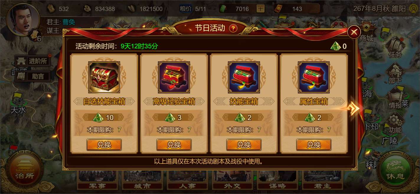 3 赞 · 6 评论伴随全新剧本玩法『贼寇入侵』开启的,还有限时活动『群雄逐鹿』~ 在本次『群雄逐鹿』中,大家可使用征战剧本(活动剧本)中的资源、武将进行培养和作战。 下面花花跟大家介绍一下~ 【传送门】全新剧本玩法『贼寇入侵』介绍: 大大们也可以点击下方链接查看本次版本资讯~~ 【活动介绍】 活动期间,通过征战剧本(活动剧本)- 群雄逐鹿 - 进入活动 即可进入本次『端午·群雄逐鹿』活动 【开启时间】 6月9日 1