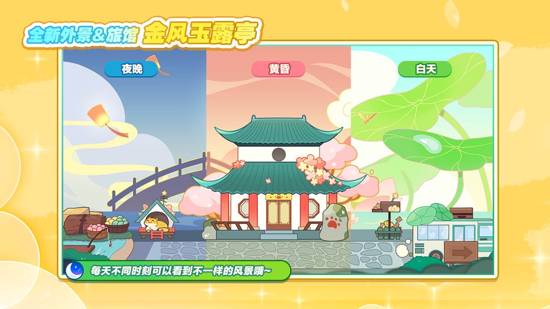 「溪畔芙蓉」版本7月18日更新 ==版本内容== 1、「溪畔芙蓉」溪畔芙蓉召唤猫猫卡池开放,两只S级神秘嘉宾即将和大家见面。 2、「青莲召唤」猫咪自选活动开启,超限定SS全新角色、探险猫、星座猫任你兑换。 3、「旅馆等级突破」旅馆等级上限开放至13级,全新旅馆外观开放。 4、「哈里商店」鱼饼干商店,旅馆13级后完成主线任务解锁。 5、「池中寻荷」关卡挑战活动。 6、「溪畔旧事」问答活动,奖励全新家