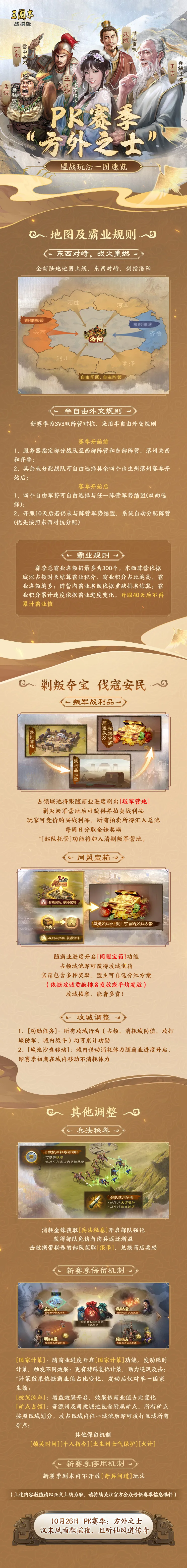 PK赛季“方外之士”的盟战玩法介绍长图已生成,快来看看小柒带来的最新情报: