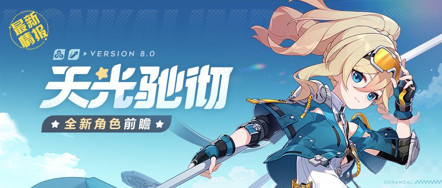 舰长好,全新S级角色幽兰黛尔「天光驰彻」将于8.0版本登场。请舰长与小跟班一起看看新角色情报吧! 在充满可能性的世界中,她再次以儿时的形象踏上新的旅途。 ——纯挚洒脱、可靠勇敢,一如她心中恒久未变的自己。 ====「天光驰彻」技能介绍==== 「天光驰彻」为虚数属性角色,可对敌人造成物理伤害,使用的武器类型为梭镖。利用灵巧的身形,「天光驰彻」驾驭浮空板迅捷地穿梭于敌阵之间,将手中梭镖化作破军利器,