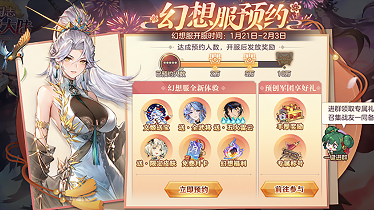「蛇年新春版本」春节专属幻想服预约明日开启 预创团小程序同步启动!服务器福利抢先看! #三国志幻想大陆