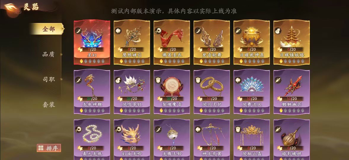 灵器,作为全新加入的养成系统,将带来前所未有的战斗力提升!通过不同的获取途径和养成方式,可以让心爱的角色们装备上独特的灵器,在战斗中所向披靡! 灵器获取途径 ①在新常驻卡池「寻器」中消耗新招募道具天机令招募获得 ②购买礼包获得 灵器效果 ①每个灵器均可为对应职业的英雄提升战斗属性 ②集齐特定组合的灵器后,还可解锁更强大的灵器套装属性 灵器养成 ①可消耗新增的道具玄光尘、琉璃玉、灵器曜石提升灵器的等
