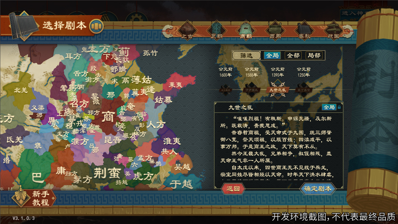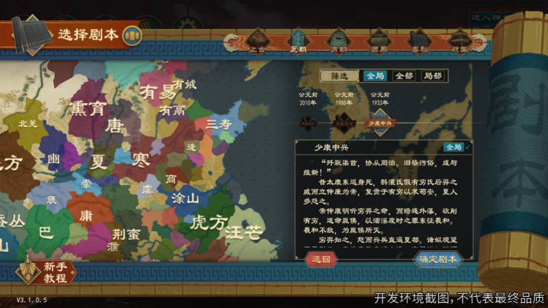 各位君上: 久等了!《大周列国志》即将迎来2025年度的首次大版本更新——“夏乐商祀”版本更新。在本次更新中,将带来全新夏朝、商朝两大全局剧本包,此外,新版本还将带来全新谥号系统及宗庙系统,全新神祖女娲以及新奇观钧台等内容,接下来将为大家带来新版本内容的详细介绍。 一、 夏朝剧本包 昔夏之方有德也,远方图物,贡金九牧,铸鼎象物,百物而为之备,使民知神奸。故民入川泽山林,不逢不若。螭魅罔两,莫能逢