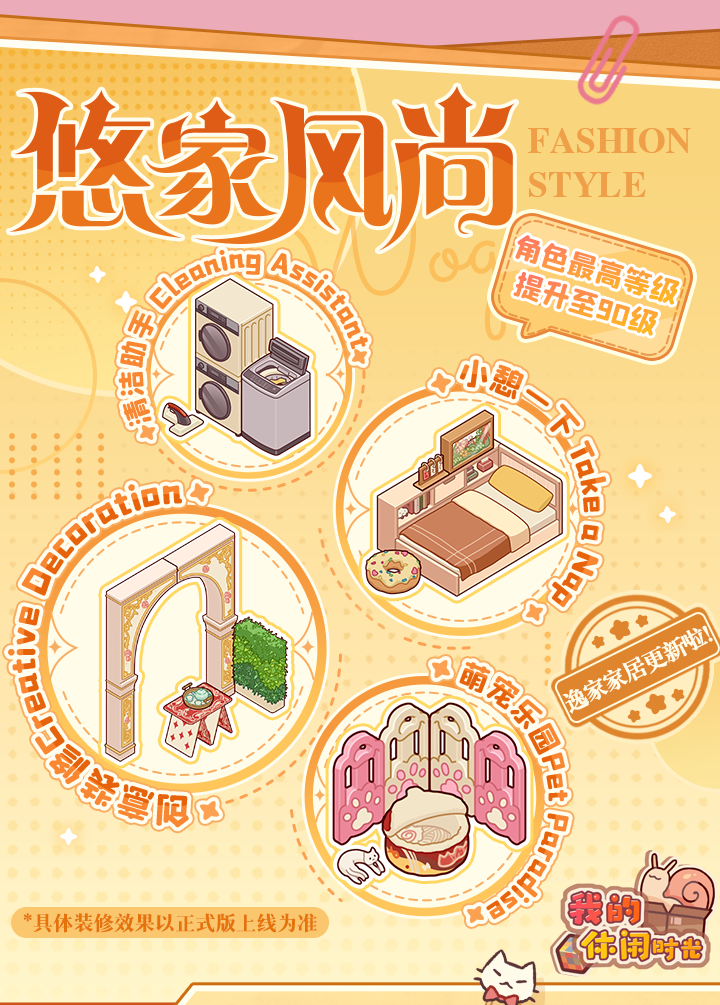 居居掐指一算,发现《悠家风尚》栏目是时候该更新啦! 洗衣机!纸牌桌!新装修!琳琅满目的好物挑花了眼 快来跟居居一起康康吧~(•̀ᴗ-)✧ ⭐️本次停服维护更新后,角色等级上限将提升至90级喔! 👇滑动下图查看详情👇 🌱居居小Tips:以下新增家具&装修将在3月19日停服维护结束后上架至逸家家居 =============== ⭐️立即下载: ⭐️成为创作官: