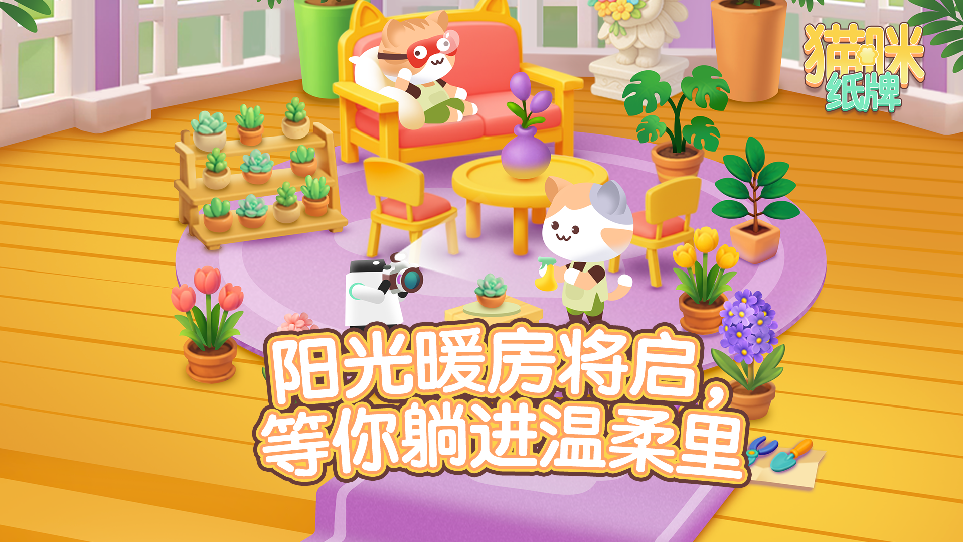 冬日暖阳漫进满是绿植的阳光房,猫咪纸牌新场景上线~来这里晒暖阳、赏绿植、玩纸牌,和软萌喵喵一起,把初冬的慵懒与治愈感统统拥入怀中!