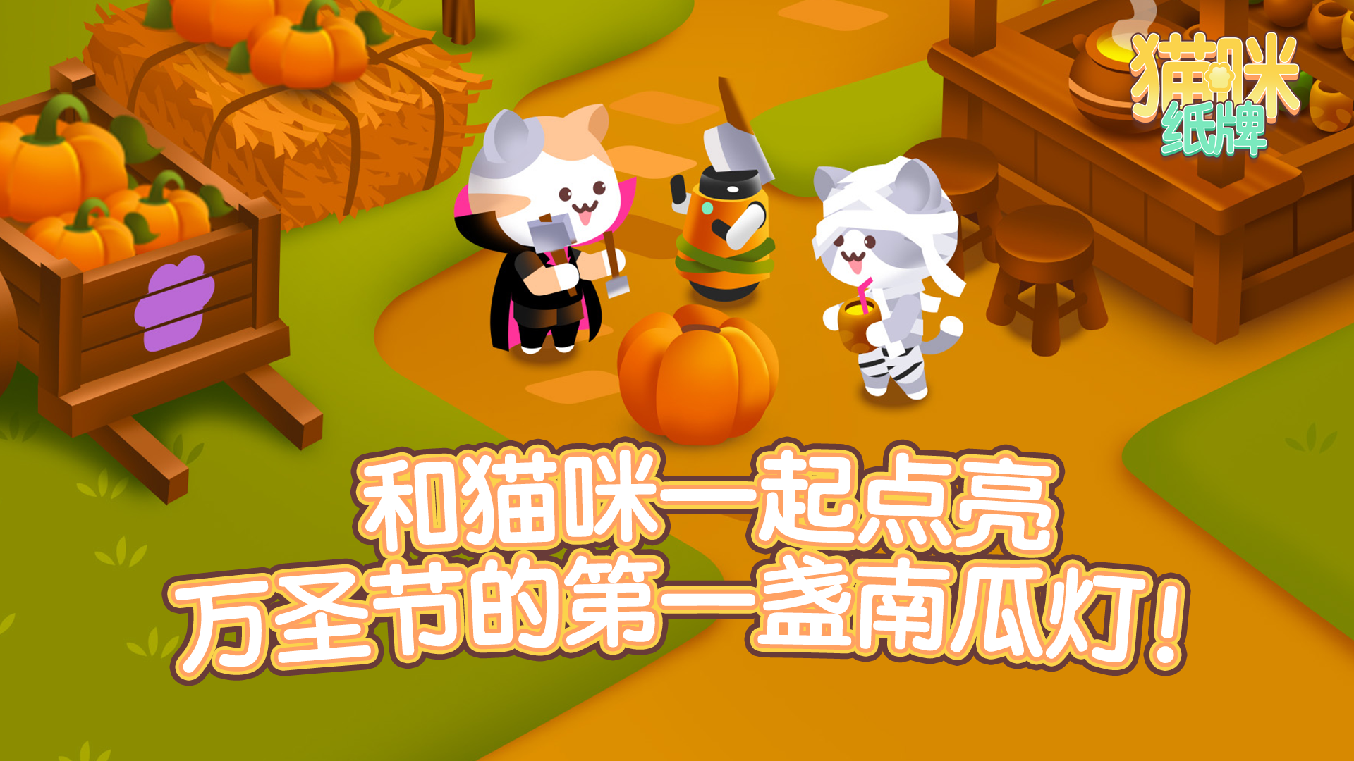 南瓜农场上线啦!和猫咪一起收南瓜、雕南瓜灯、玩纸牌。欢乐又可爱的万圣节派对开始啦~