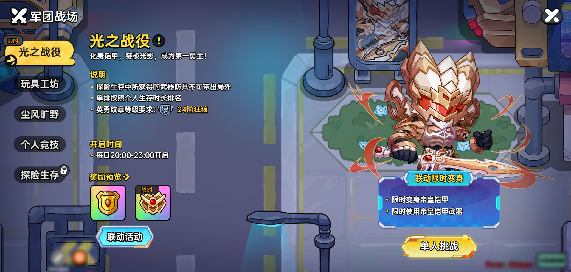 44 赞 · 93 评论自从英勇之地X铠甲勇士官宣联动,厨娘每天都能收到勇士们的催更! 于是厨娘每天蹲点策划办公室,蹲蹲蹲...捡到一张手绘图,这是?联动新皮肤! 全新时装【剑客-帝皇铠甲】 首位登场的是帝皇铠甲,当剑客手里的剑变成极光剑,一股强大的力量正在酝酿中... 玫瑰金配色彰显气质,红色点缀增添力量感,穿上帝皇铠甲,穿梭大陆守护正义之光,以天道之名踏破黑暗! 这就是霸气的帝皇铠甲!勇士们是不是心动了?!在下方【评