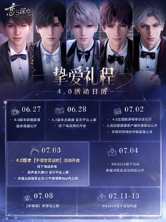 用歌声诠释浪漫与誓言,让爱于深空中永恒回响。 💫4.0版本主题曲《于深空见证的》正式上线! 于深空的见证下,许下跨越维度的永恒誓约。 🎵QQ音乐: 🎵酷狗音乐: 🎵酷我音乐: 💫《于深空见证的》互动活动同步开启! 点击链接,即可前往QQ音乐、酷狗音乐参与活动: 🎵QQ音乐: 🎵酷狗音乐: 6月28日11:00~7月11日23:59, 完成收听歌曲、分享活动页面、发布15字以上乐评、关注官方账号等任