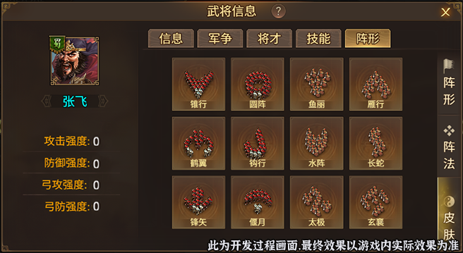 新版本中,我们优化了兵书界面,并将兵书、指挥技等入口也增设至点将台的武将界面,点击武将能力即可前往对应页面。 同时也将对点将台武将的阵形开放额外效果:“阵法”、“外观”,可强化武将阵形的攻防属性等方面,并获得特殊外观,一起来看下详细介绍吧~ ★版本内容★(点击预约及时收到更新通知~) 注意:本文内所有爆料内容均来源于开发版本,实际效果请以线上效果为准。 ● 阵法 依次选择武将的【阵形】-【阵法】界